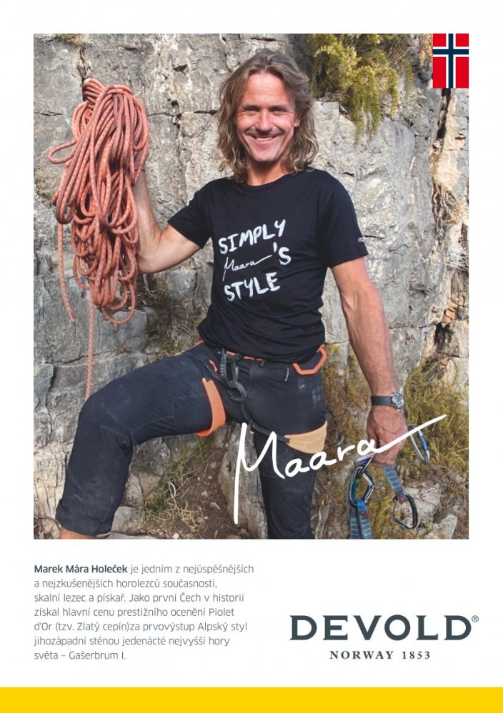 Náš ambasador Mára Holeček je jedním z nejúspěšnějších a nejzkušenějších horolezců současnosti, skalní lezec a pískař. Výrobky Devold ho provází při každém jeho dobrodružství a díky spokojenosti s jejich kvalitou jim zůstáva věrný.