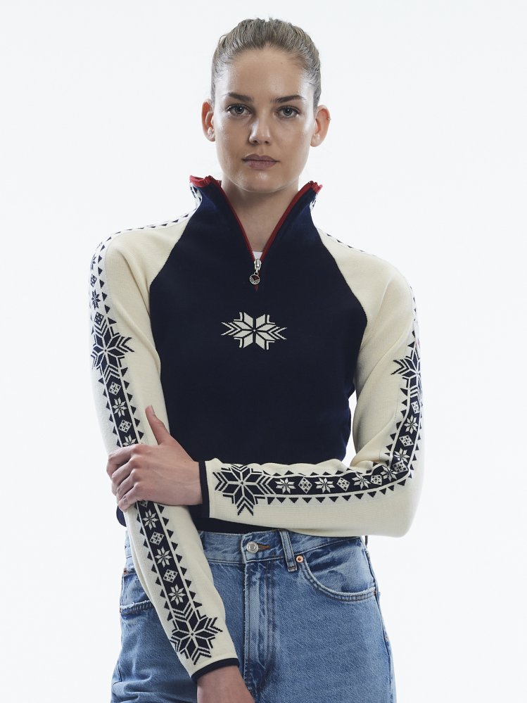 Velmi příjemný vlněný svetr z nejkvalitnější jemné Merino vlny je pojmenován po jedné z nejznámějších lyžařských oblastí v Norsku. Atraktivní sportovní střih krásně dotváří dámské křivky a vyznačuje se odolnou a udržitelnou dvojitou pletenou konstrukcí. Je ideální pro aktivní životní styl. Bílá barva je odolná vůči skvrnám.
