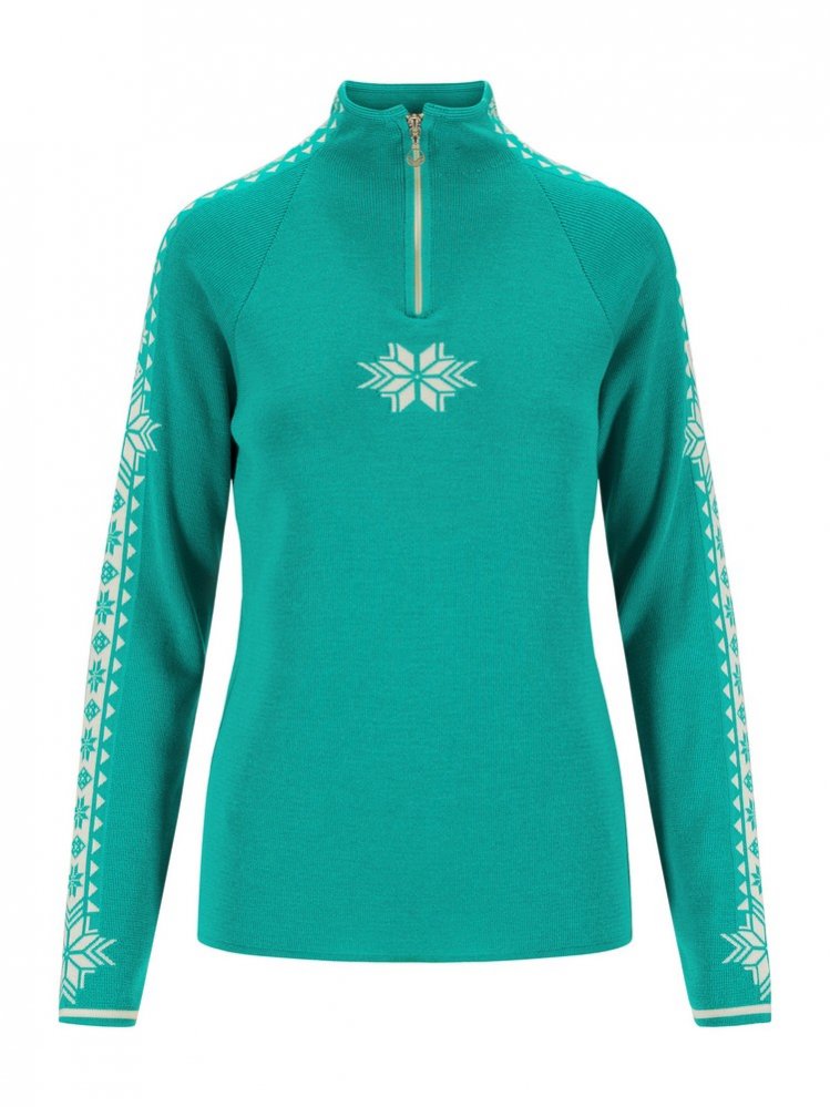 Velmi příjemný vlněný svetr z nejkvalitnější jemné Merino vlny je pojmenován po jedné z nejznámějších lyžařských oblastí v Norsku. Atraktivní sportovní střih krásně dotváří dámské křivky a vyznačuje se odolnou a udržitelnou dvojitou pletenou konstrukcí. Je ideální pro aktivní životní styl. Bílá barva je odolná vůči skvrnám.