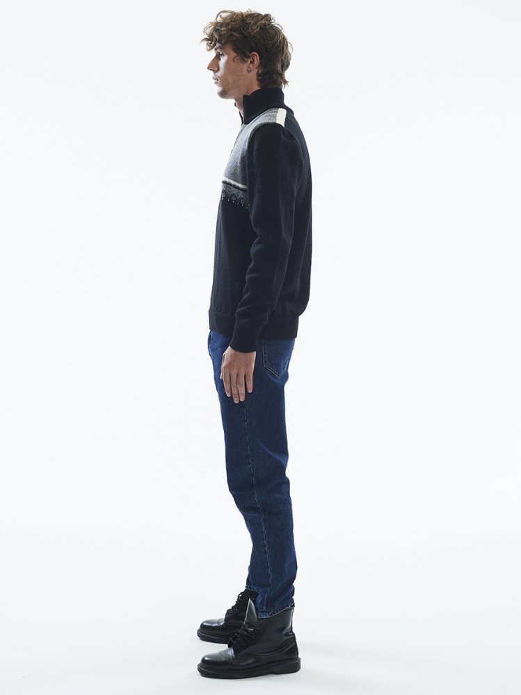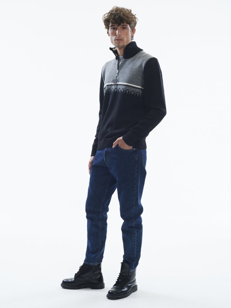 Nadčasový svetr s čistým designem a ostrými kontrasty. Svetr je upleten v námořnické barvě a má na hrudi a uvnitř krku pruh norské vlajky. Původně to byl oficiální svetr mistrovství světa 2017 pro norský tým v běhu na lyžích, který se konal ve finském Lahti. Moderní klasika takříkajíc ze 100% dlouhotrvající vlny. Pro větší pohodlí je krk podšitý měkkou merino vlnou.