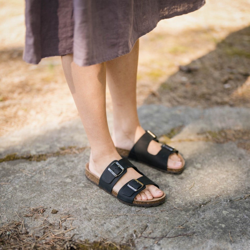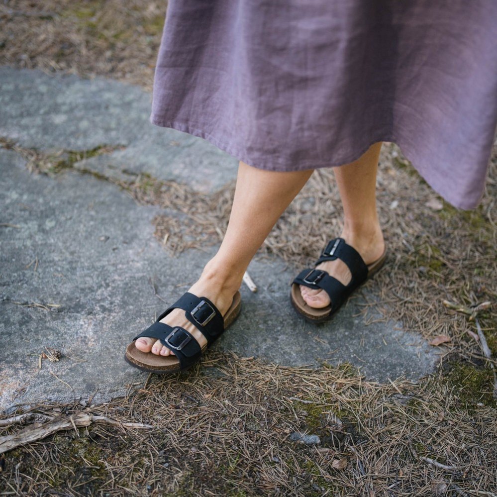 Pantofle Aurinko jsou stylové, nenáročné a hodí se k mnoha příležitostem. Pantofle mají dva nastavitelné pásky a tvarovanou stélku. Hodí se jak do města, tak do kanceláře. Jsou ideálním řešením pro chvíle odpočinku v horkých letních dnech u moře na pláži či na chatě v lese.